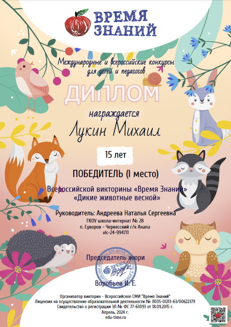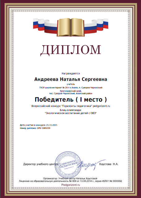 квалификационная категория: высшая, приказ № 446 от 31.03.2025