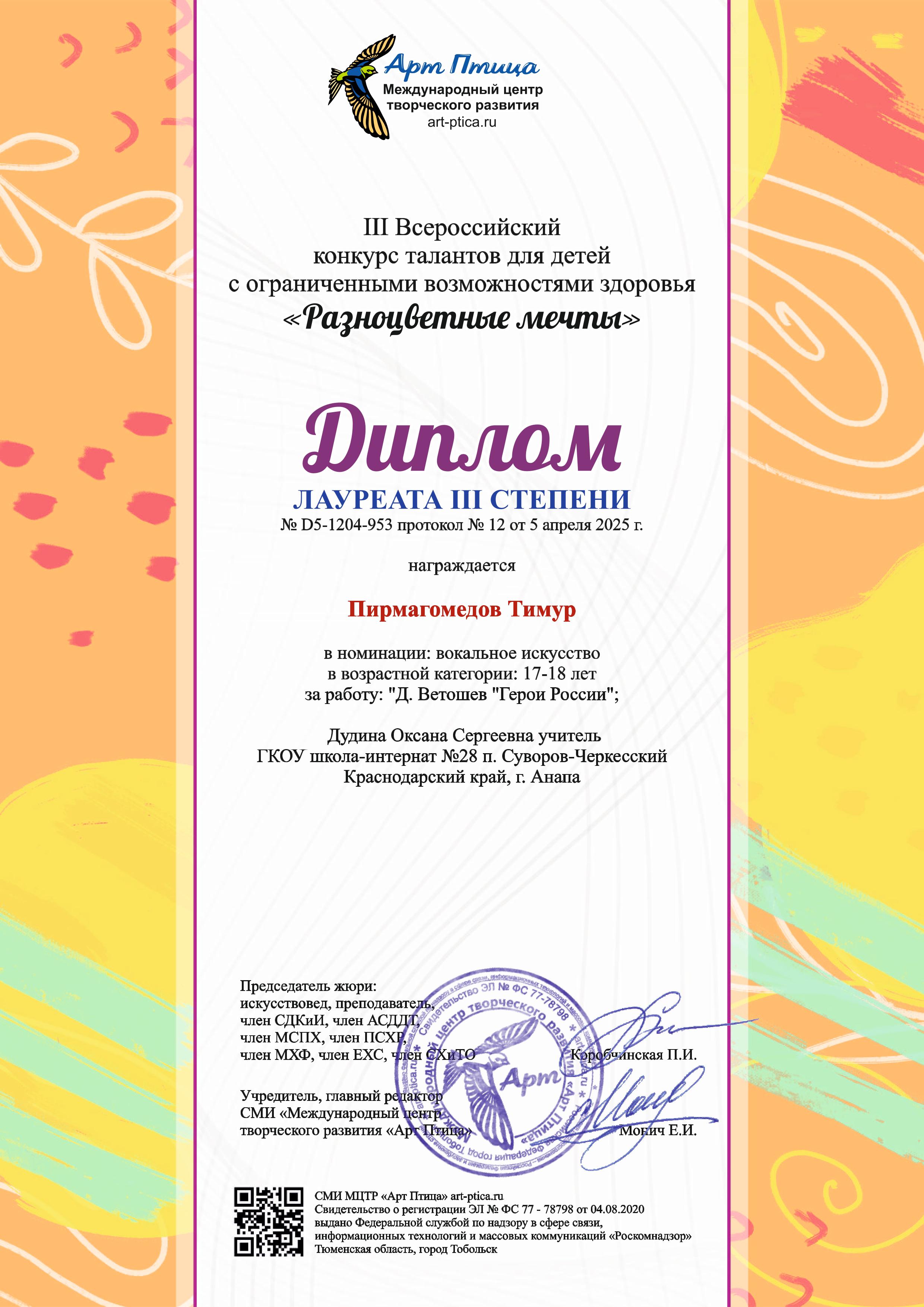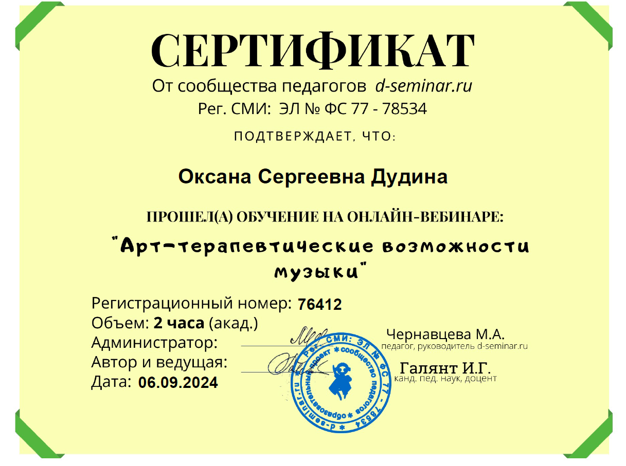 квалификация: вокальное искусство, эстрадно-джазовое пение, преподаватель