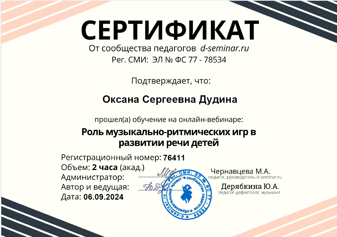 стаж педагогической деятельности: 5 лет.