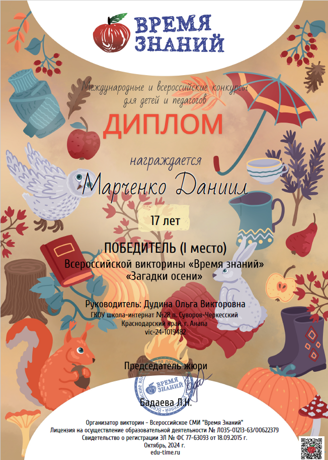 квалификационная категория: высшая, приказ № 970 от 30.05.2025