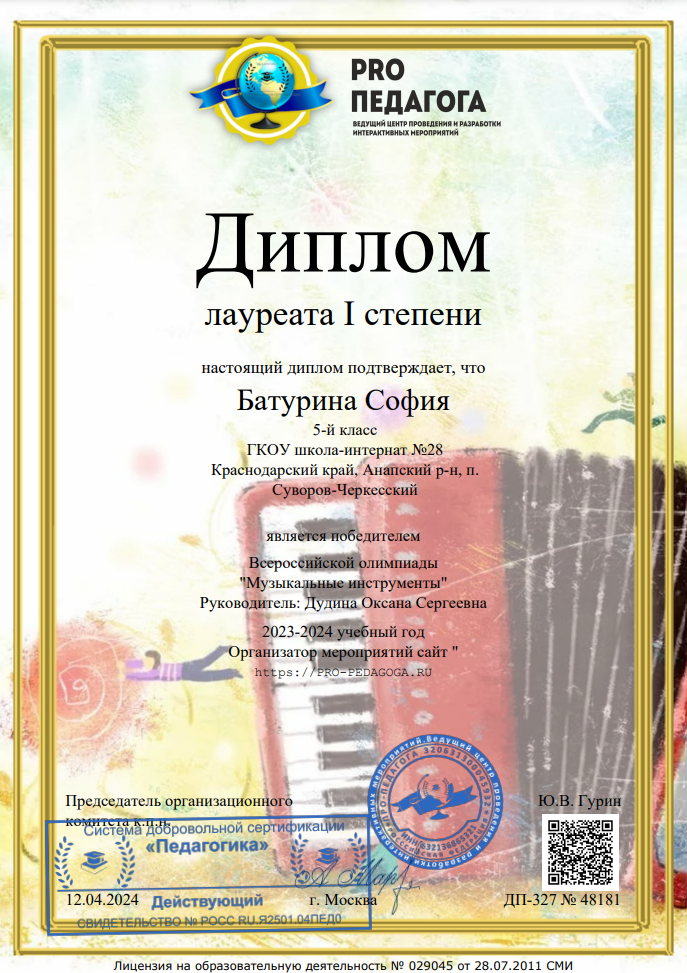 образование: ООО «Институт повышения квалификации и профессиональной переподготовки», г. Ростов-на-Дону, 2024 г.