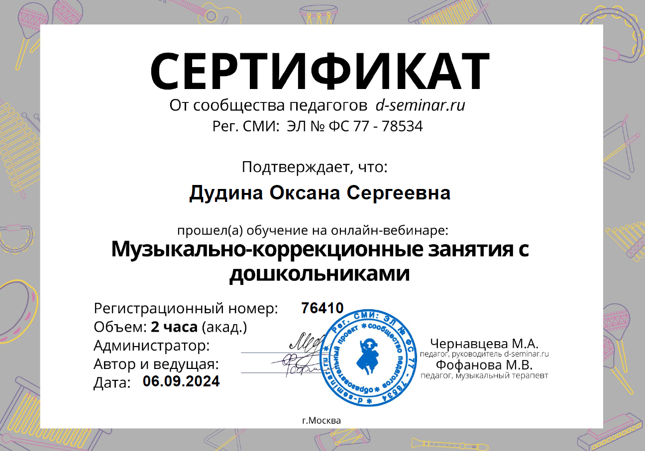 стаж педагогической деятельности: 5 лет.